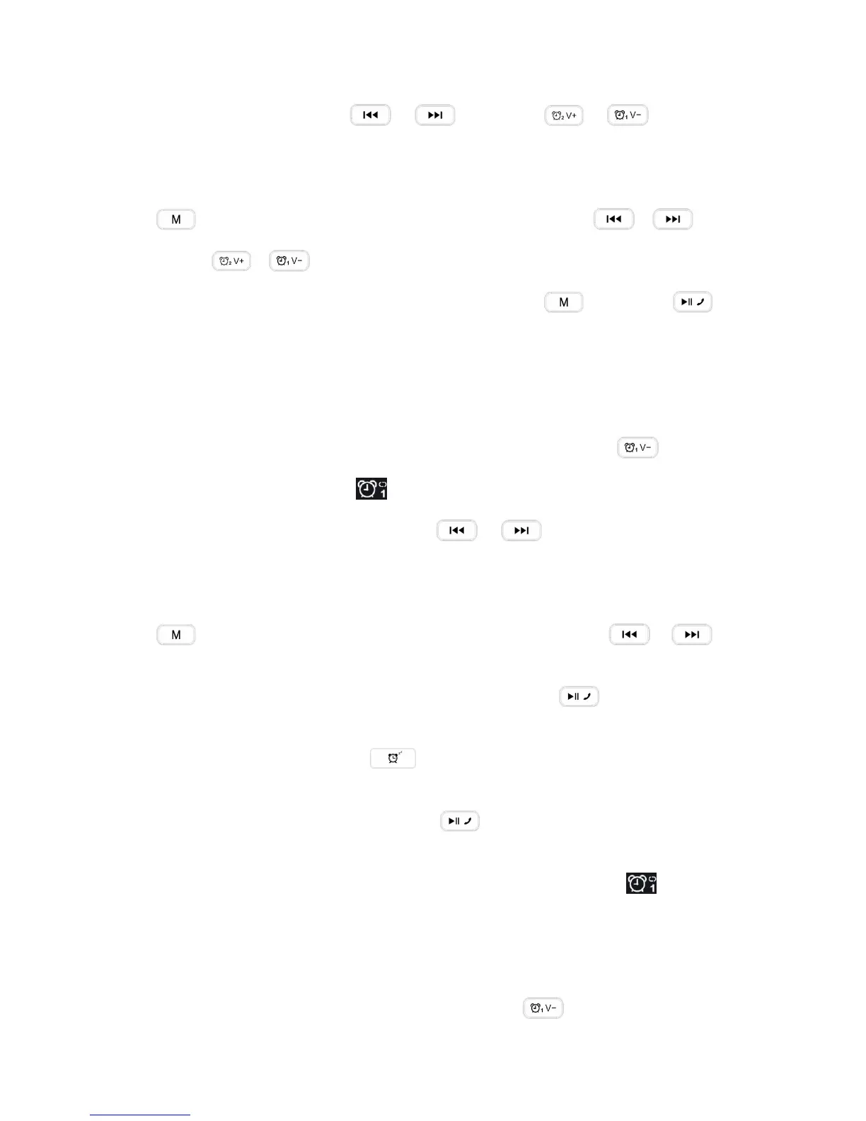3. In the hour or minute setting, short press or long press “M” key or “Play” key