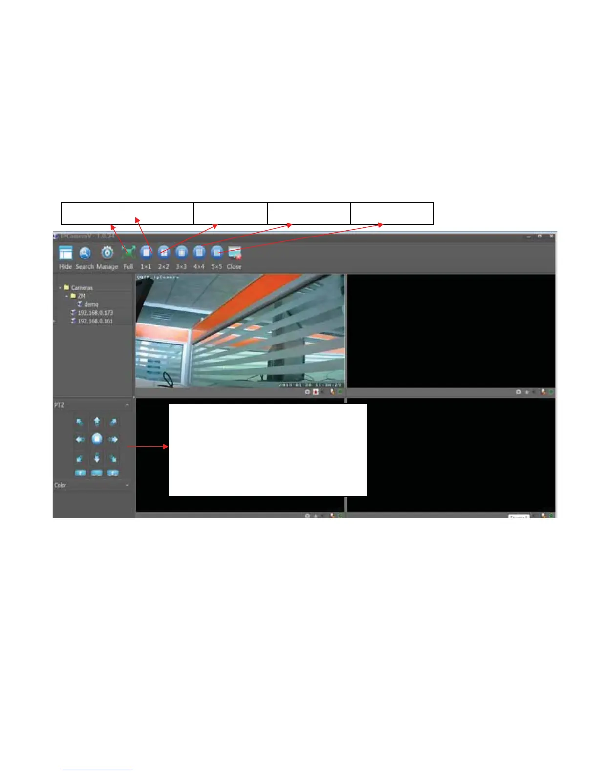 interface. User can select view 1 camera, 4 cameras, 9 cameras, 16 cameras