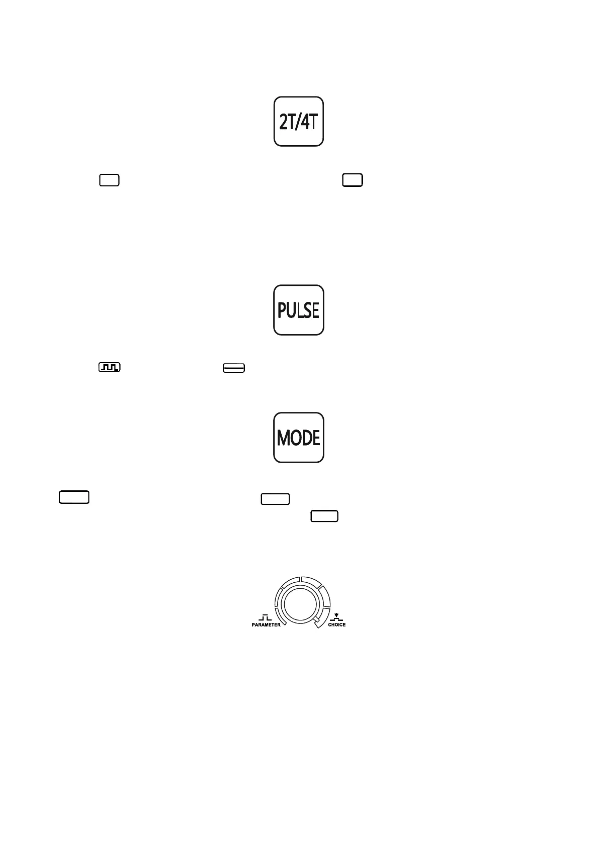Button active only TIG welding. Mode selection is signaled by lighting up the symbol