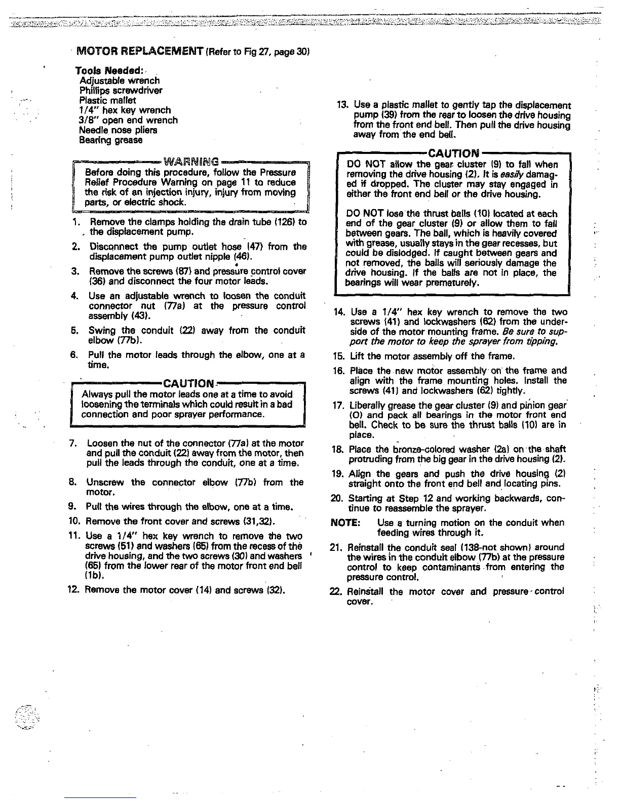 Remove the motor cover (14) and screws