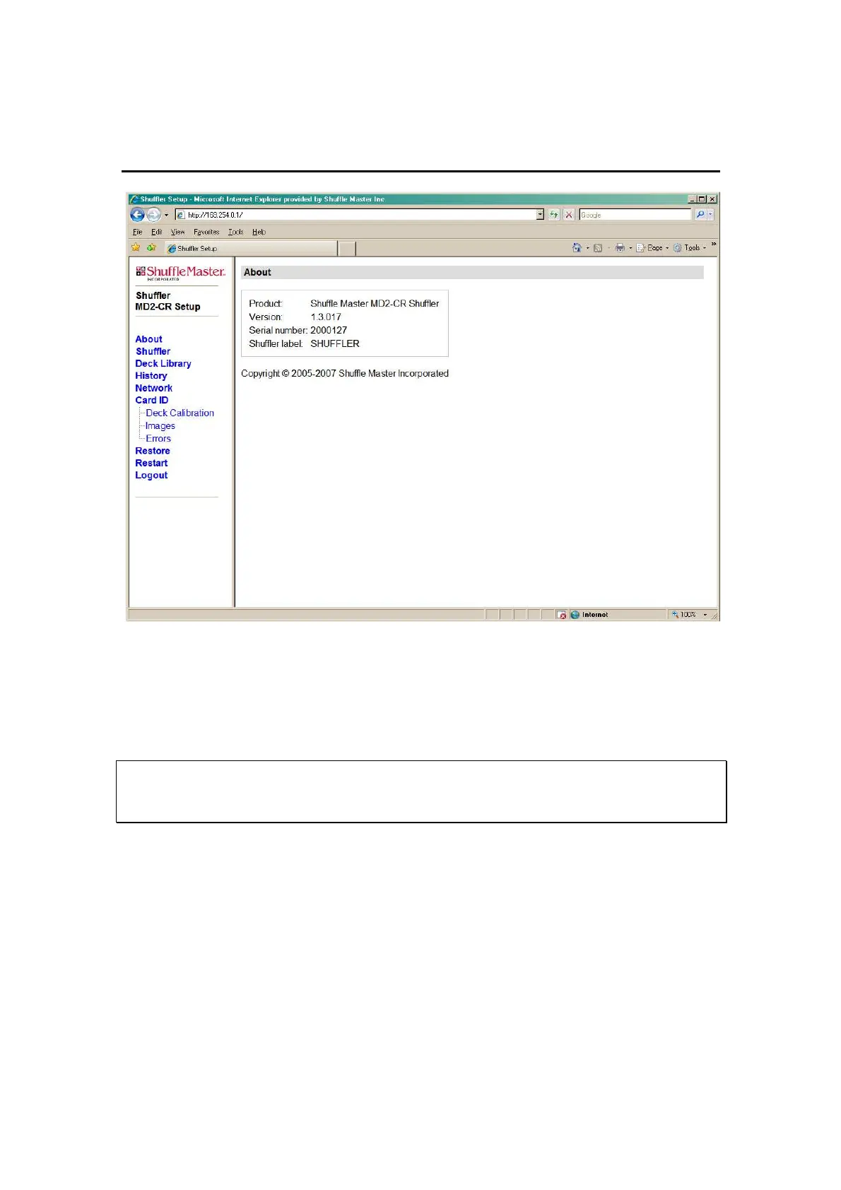 Shuffler Configuration Web Page