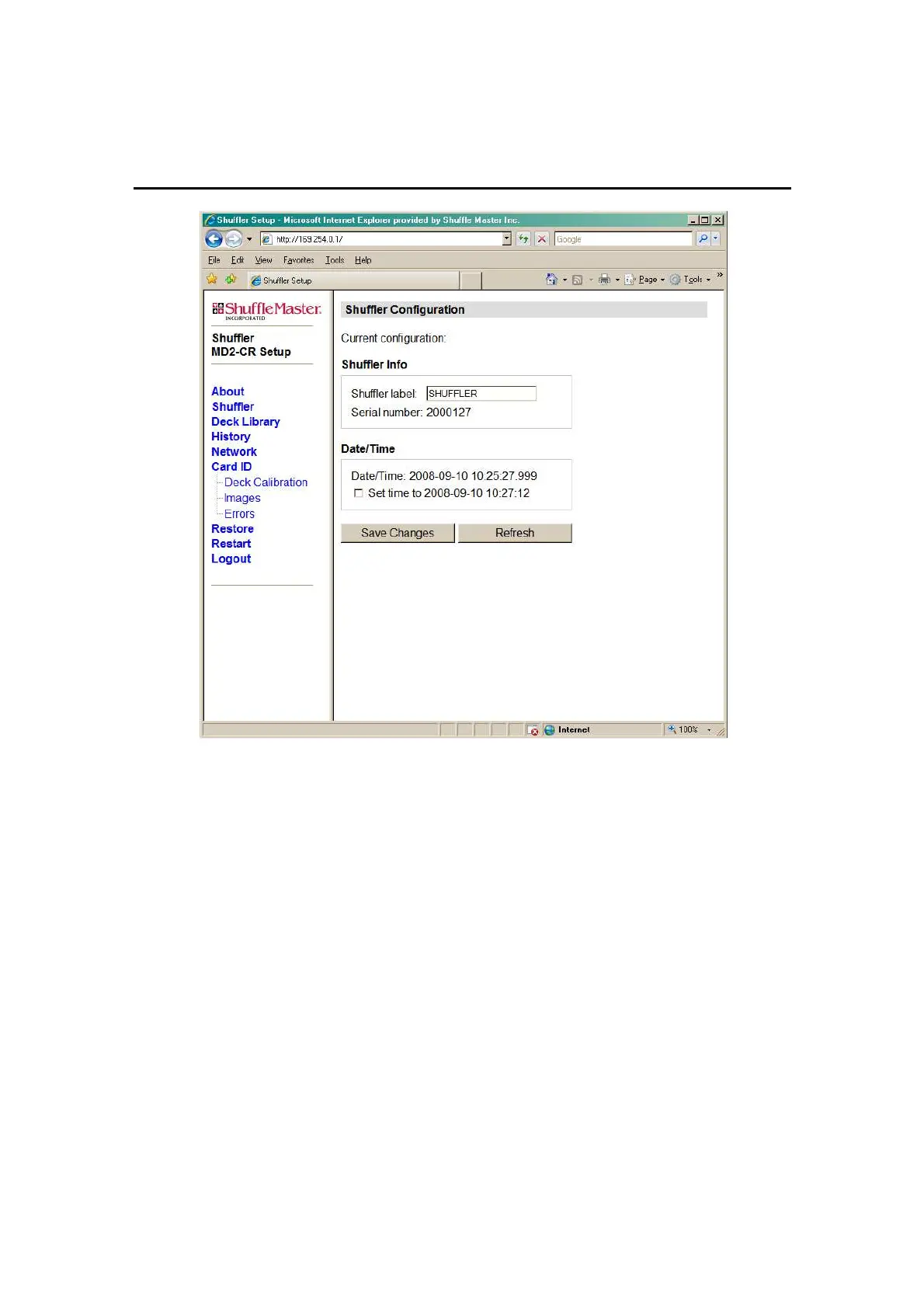 Figure 5-6. Shuffler Configuration Web Page