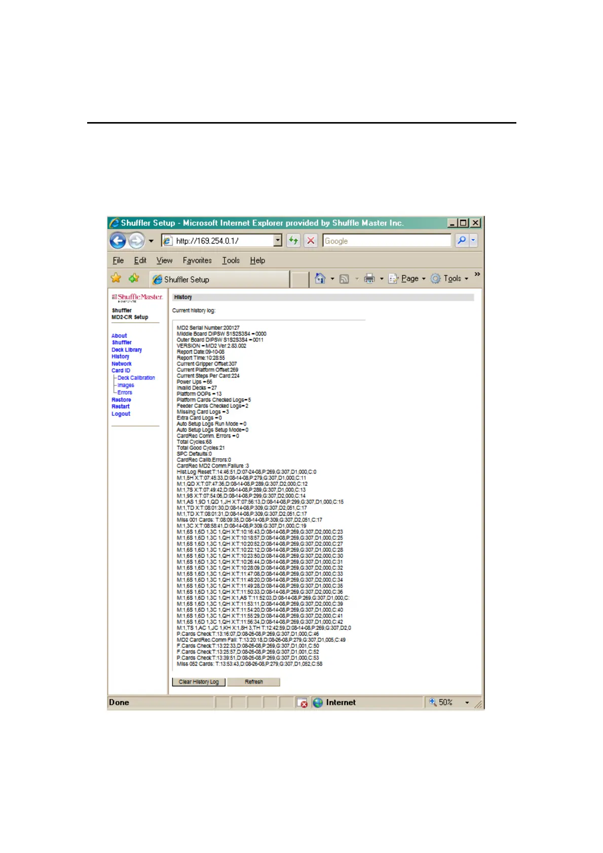 This web page (Figure 5-8) allows a technician to review unknown card