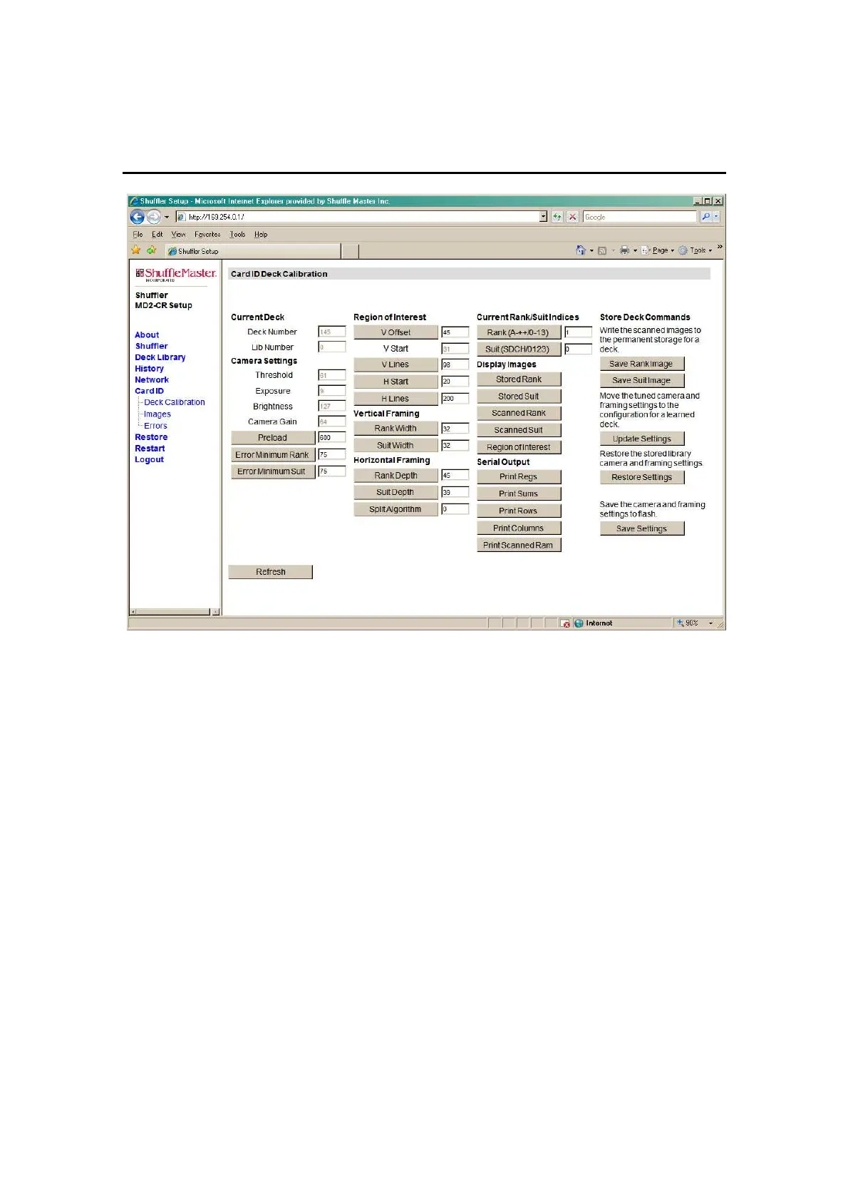 Figure 5-11. Card ID Deck Calibration Web Page