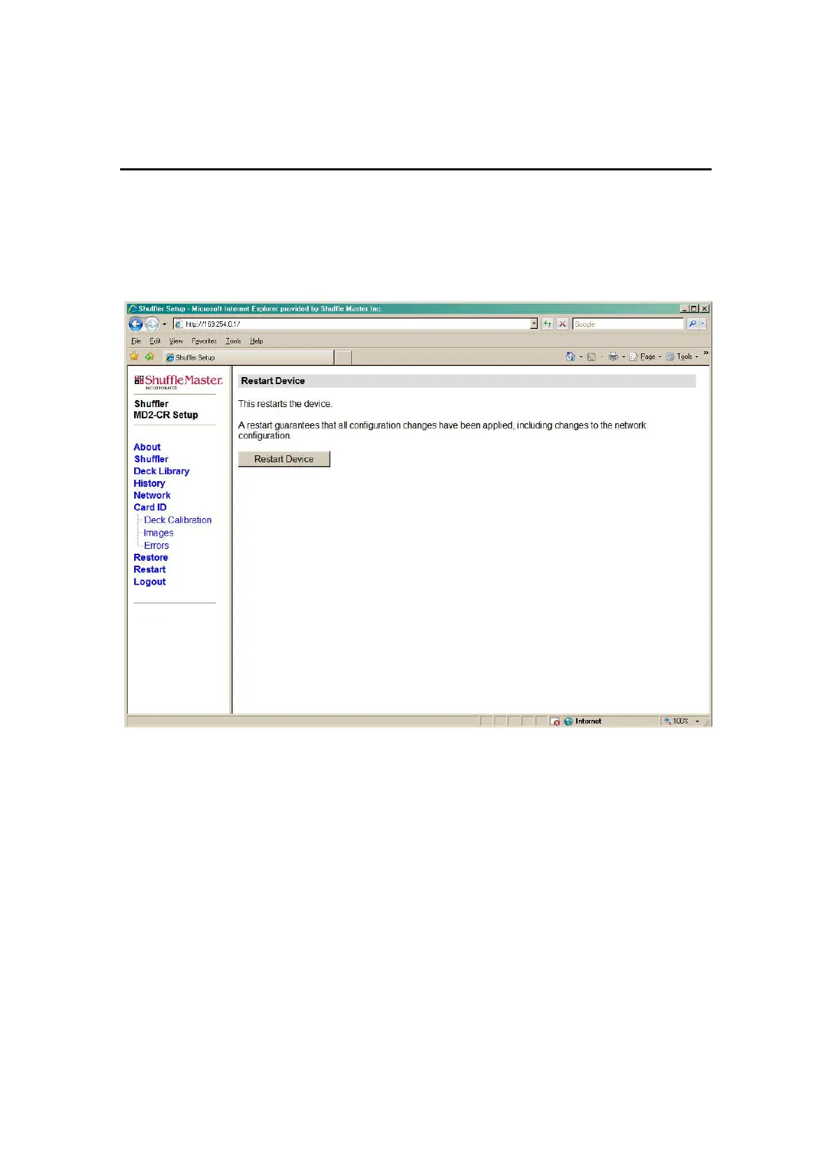 Restart Device Web Page