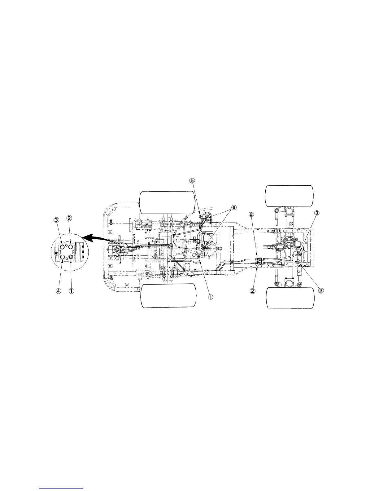 4. Flare nuts of oil pipes for steering motor to HST oil filter : 39.2 – 49.0 N·m {4 – 5 kgf·m}