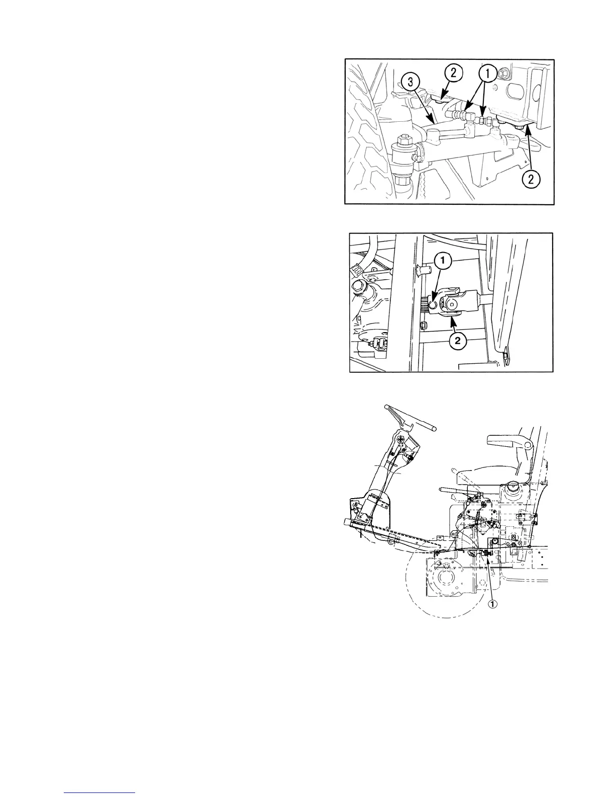 13. Remove the bolt ①, from the universal joint ②,