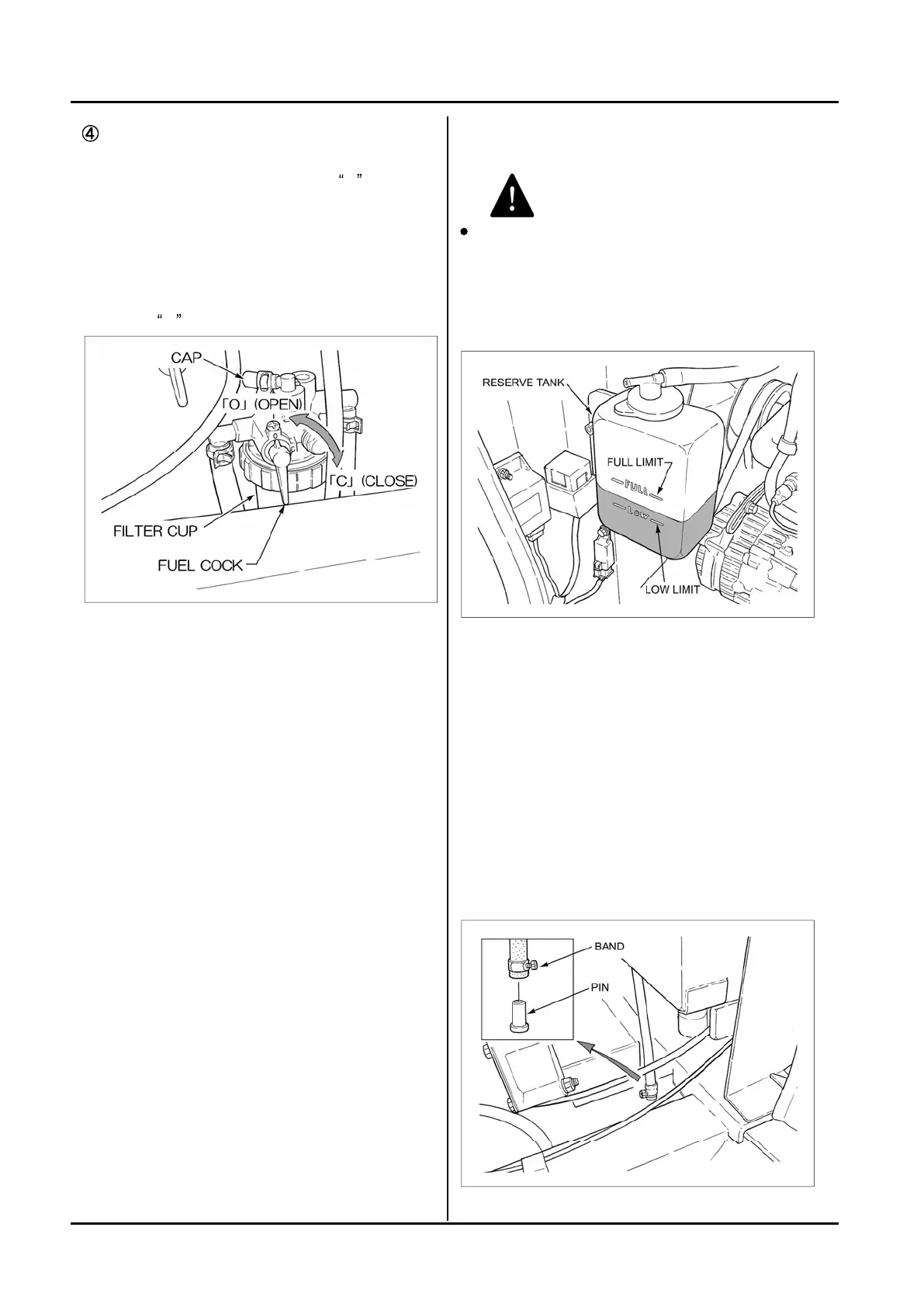 (1) Turn the fuel tap to the C (closed)
