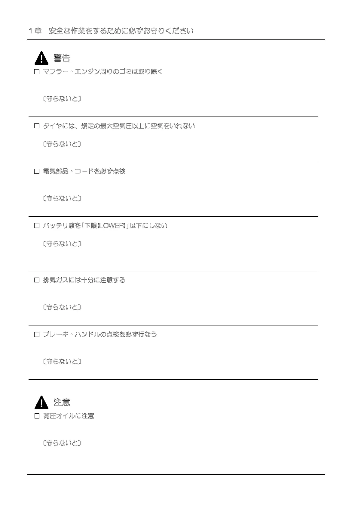 1章 安全な作業をするために必ずお守りください