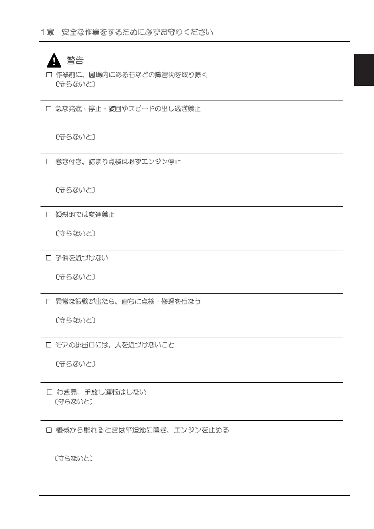 ■ 作業前に、圃場内にある石などの障害物を取り除く