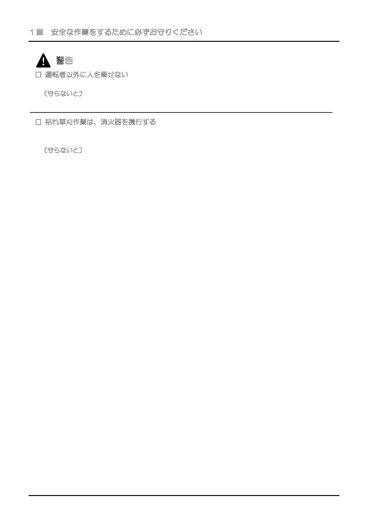 この機械の乗車定員は1名です。運転者以外に人を乗せないでください。