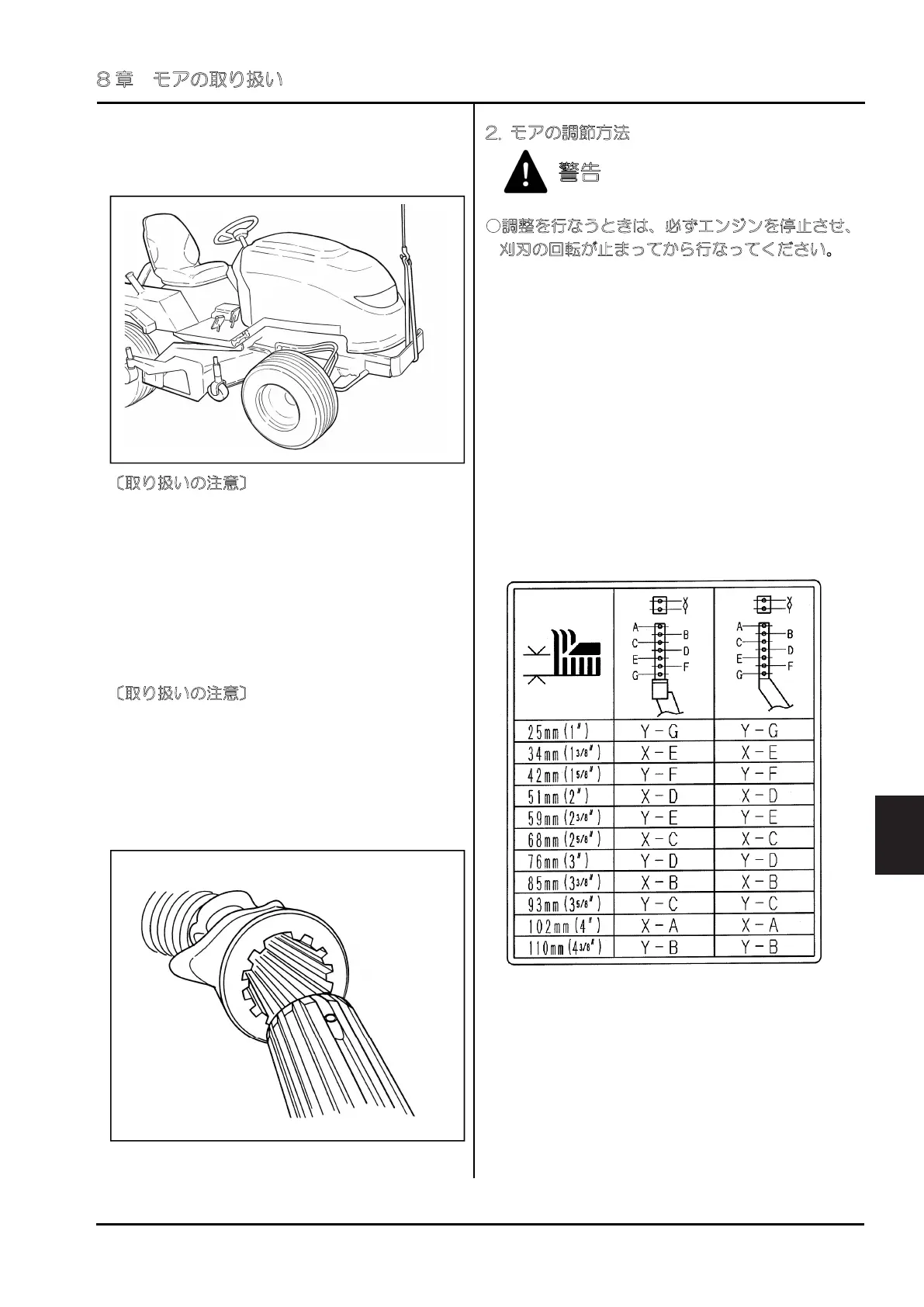 (2) 本機の昇降レバーを操作し、モアを上昇さ
