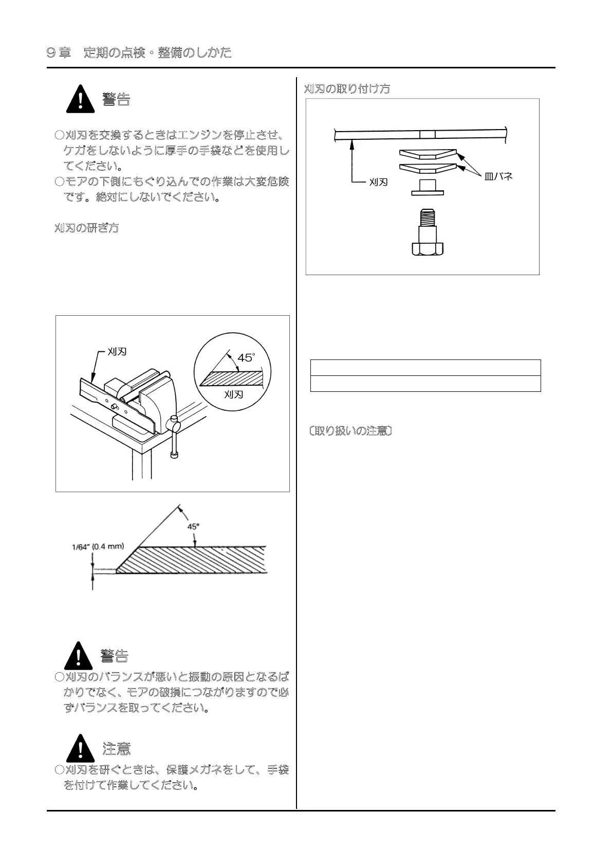 刈刃の取付ボルトは下表に従い締め付けてくだ