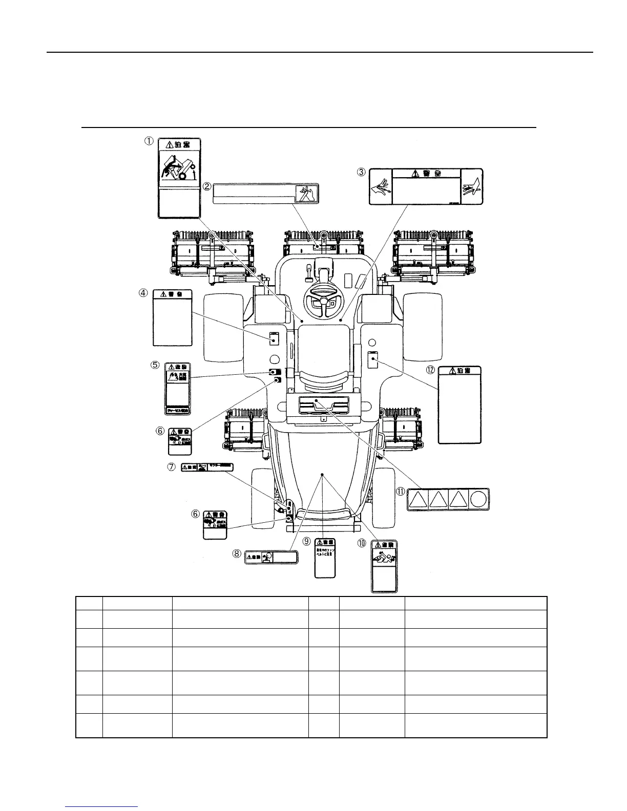 Safety nameplates are attached to the machine as shown below to secure safe operation.