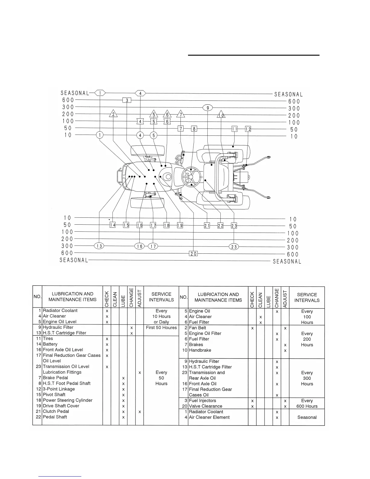 Shibaura ST324 - LUBRICATION AND MAINTENANCE; LUBRICATION AND MAINTENANCE CHART