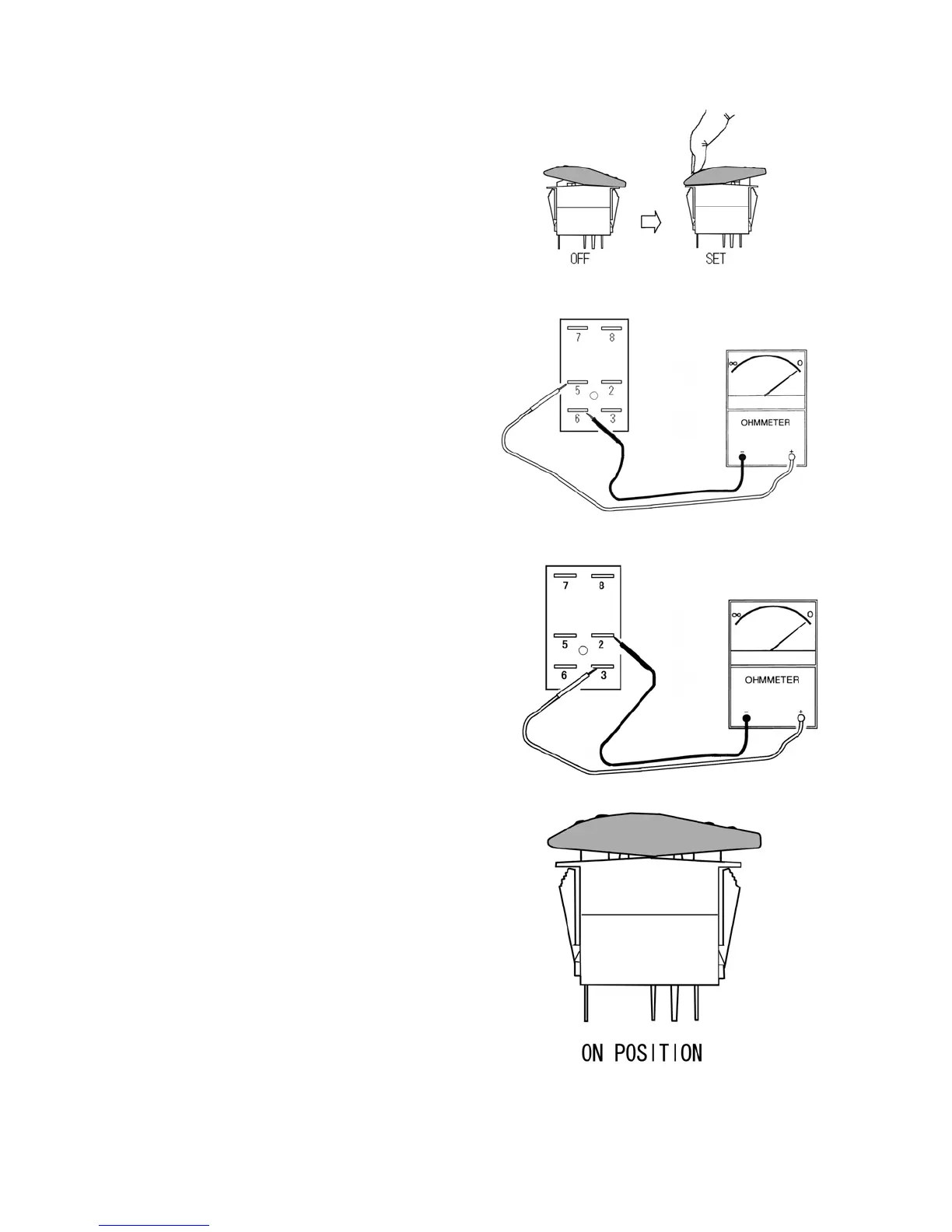 the “ON” position. Observe the ohmmeter.