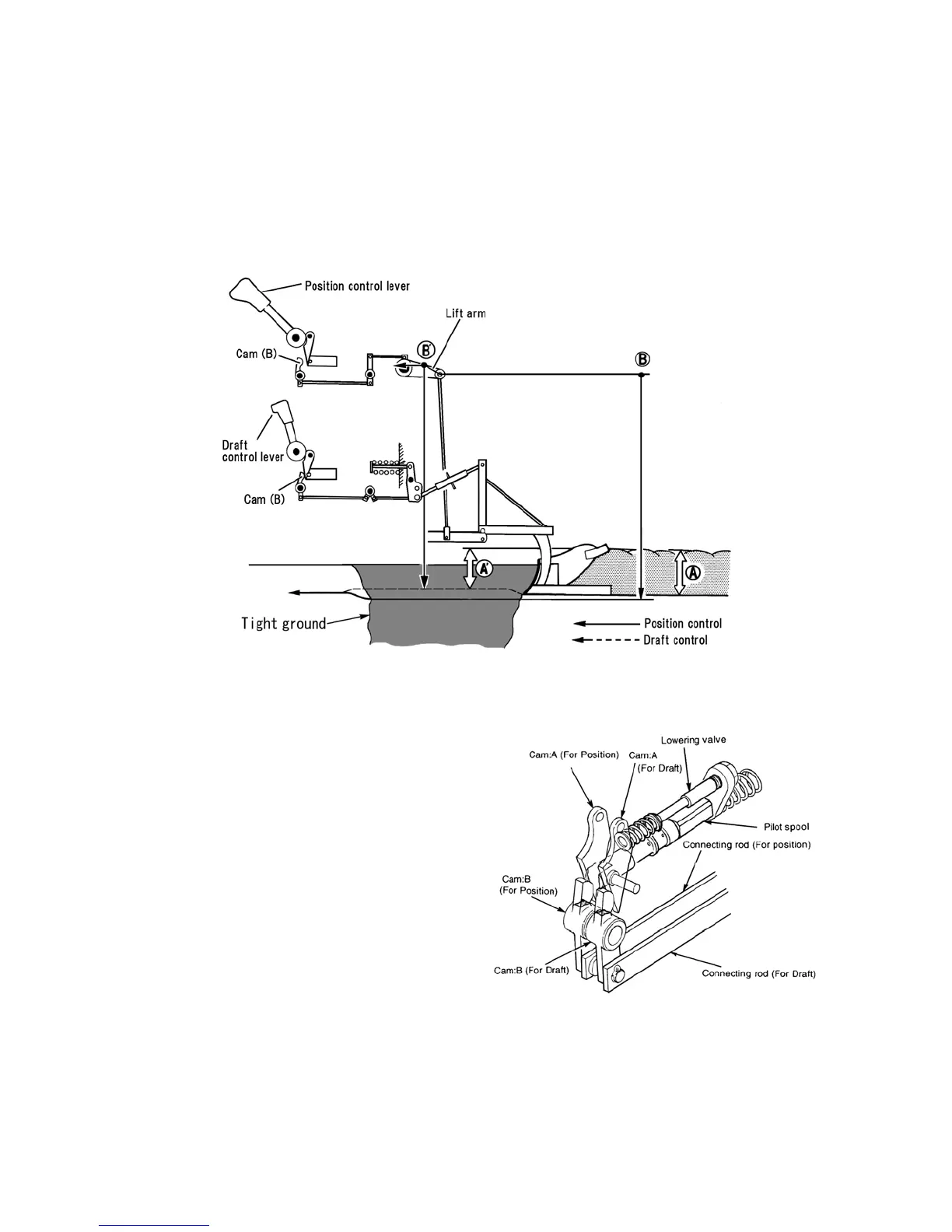 hard ground, the draft control attempts the depth of (A’) to keep the traction resistance constant. However, though