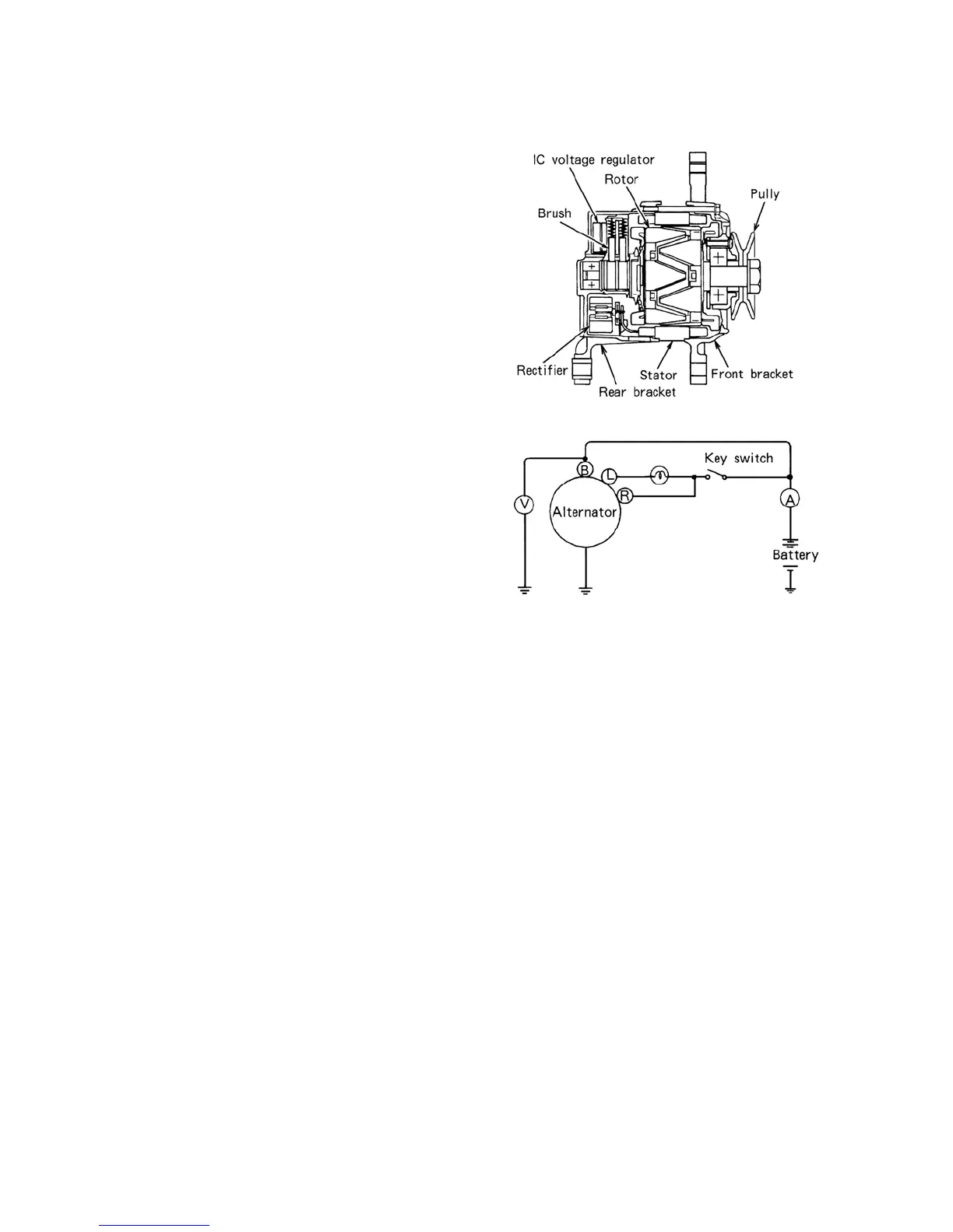 b. Connect a voltmeter between the terminal B of the alternator and the ground. In this state,