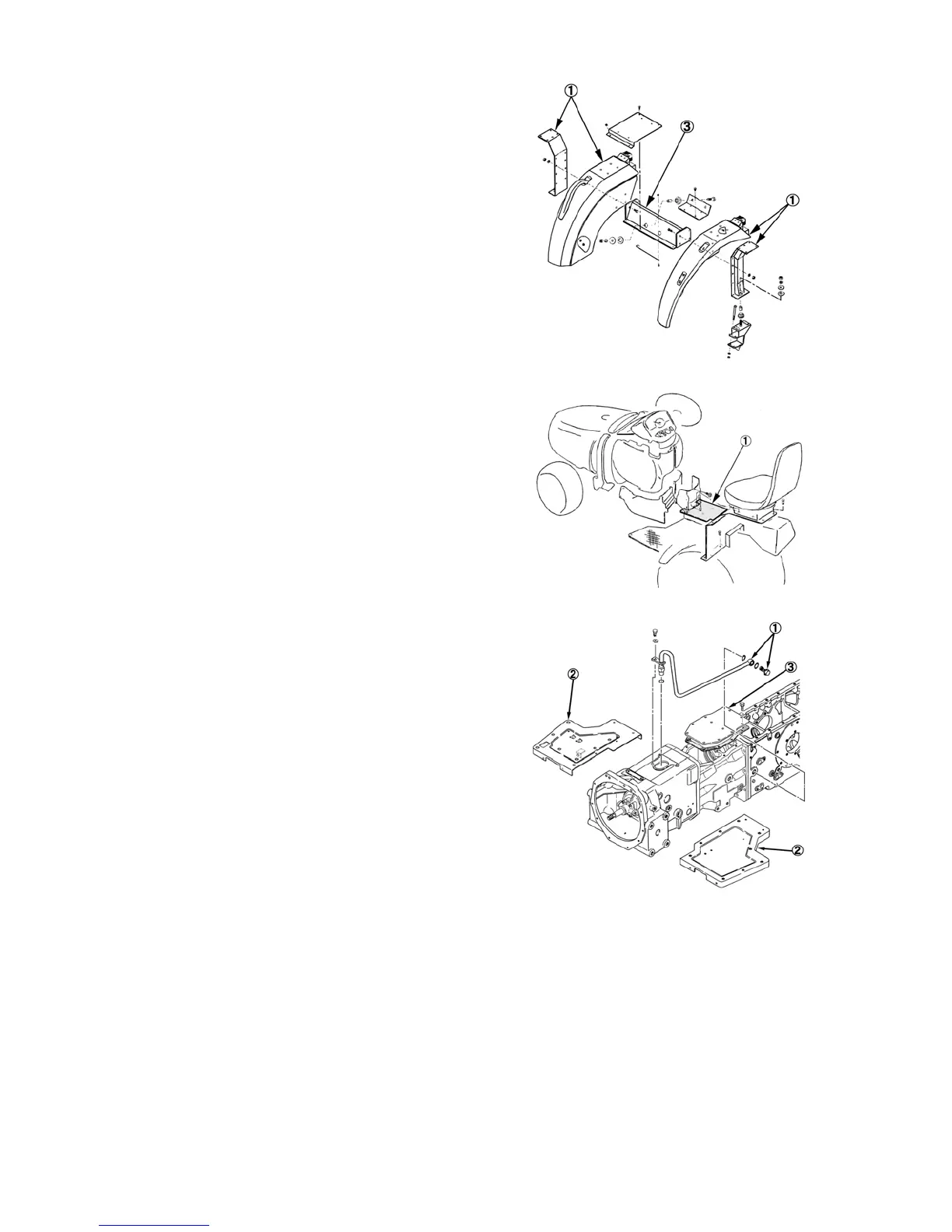 ① Remove the fenders and ROPS. frame: lower.