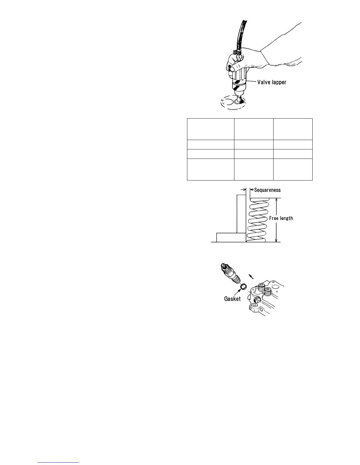 ➀ Check the valve spring visually for damage.