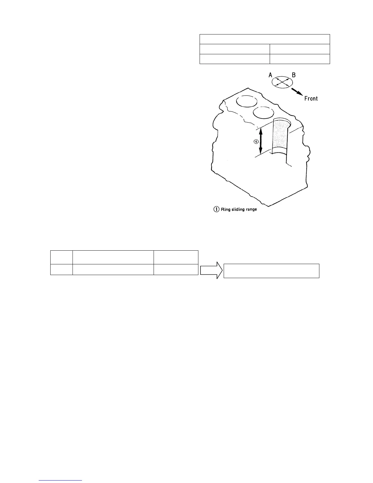 ➁ Measure the cylinder bore at the top, center and