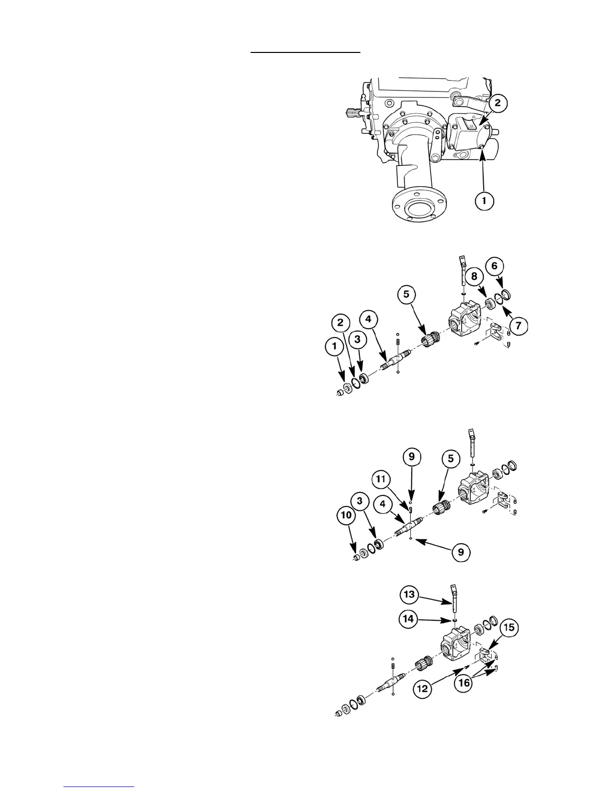 8. Remove the shift fork, 15, and pins, 16, from the