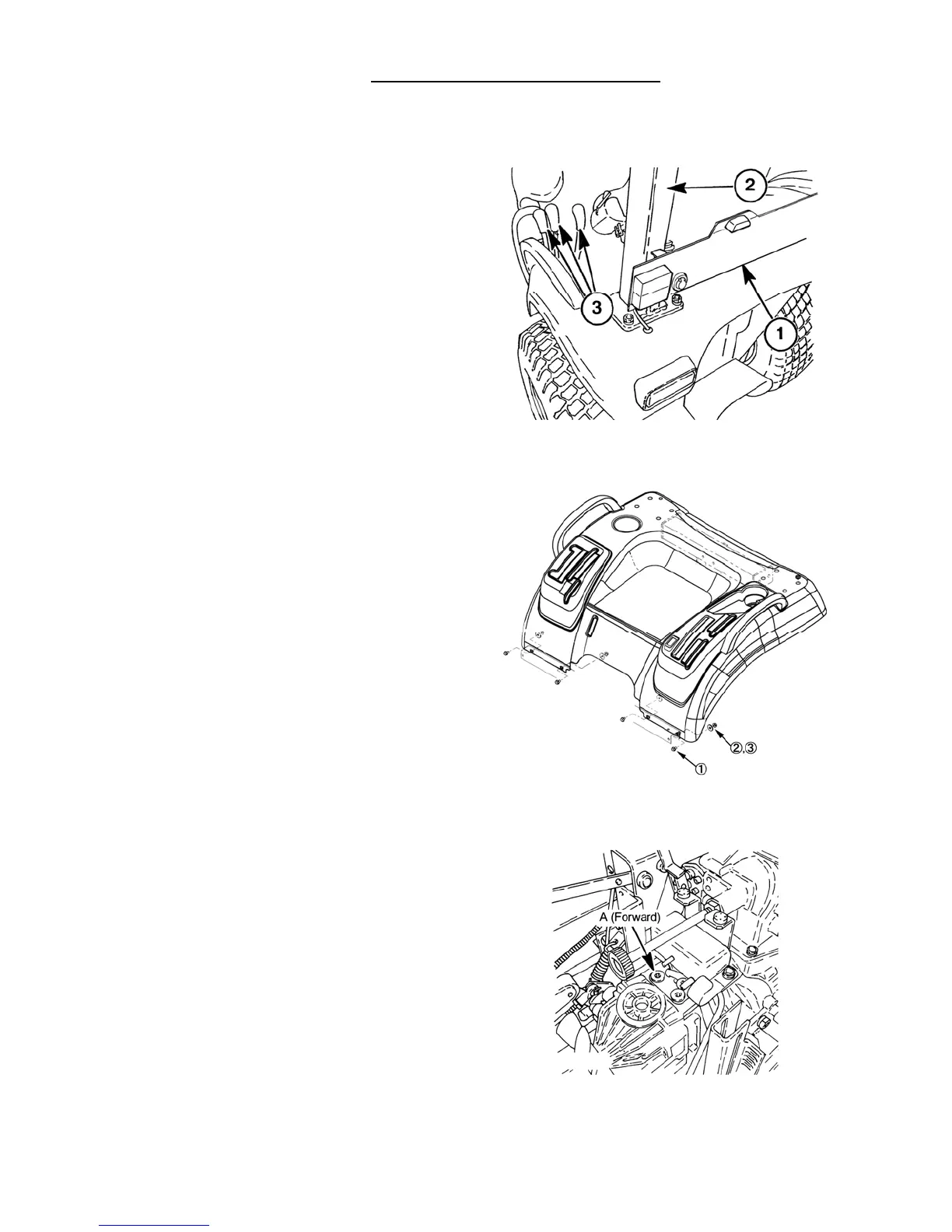 2. Remove the tool box, lights support, 1, and ROPS, 2,