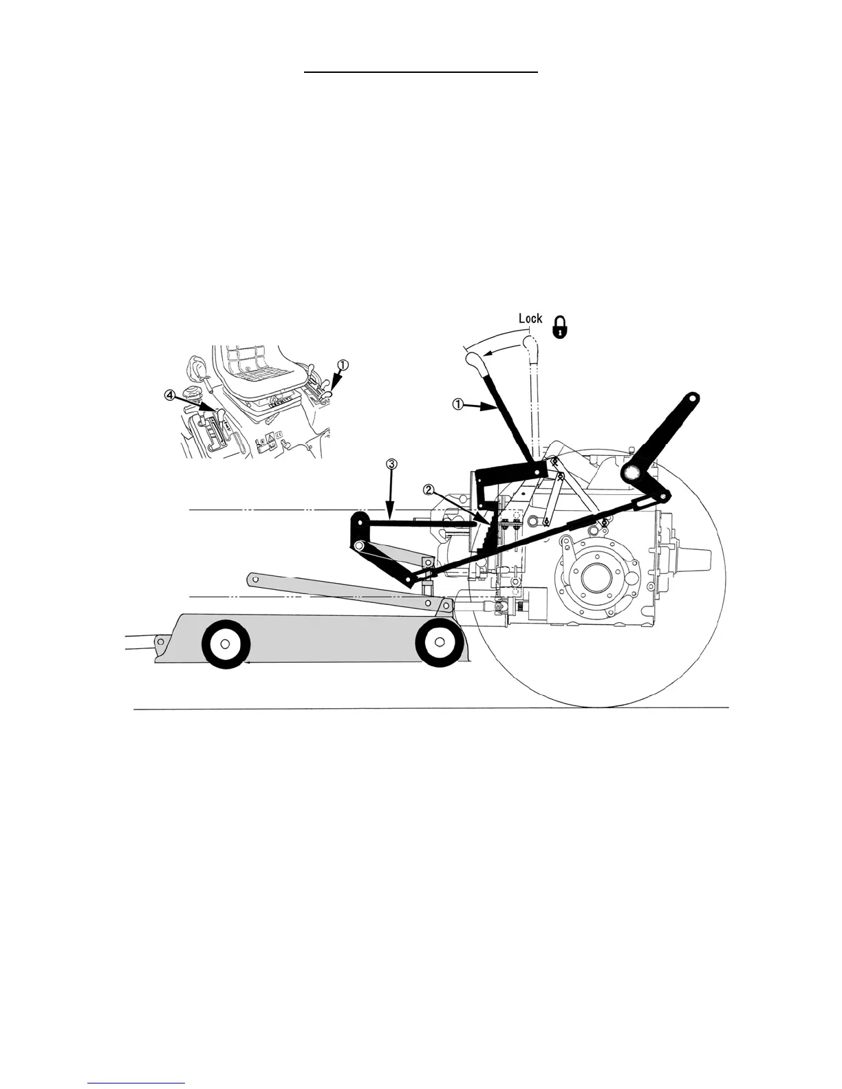 Note that, with the HPL control lever, 4, still in the "raise" position, the lift arm linkage holds the mower deck at its