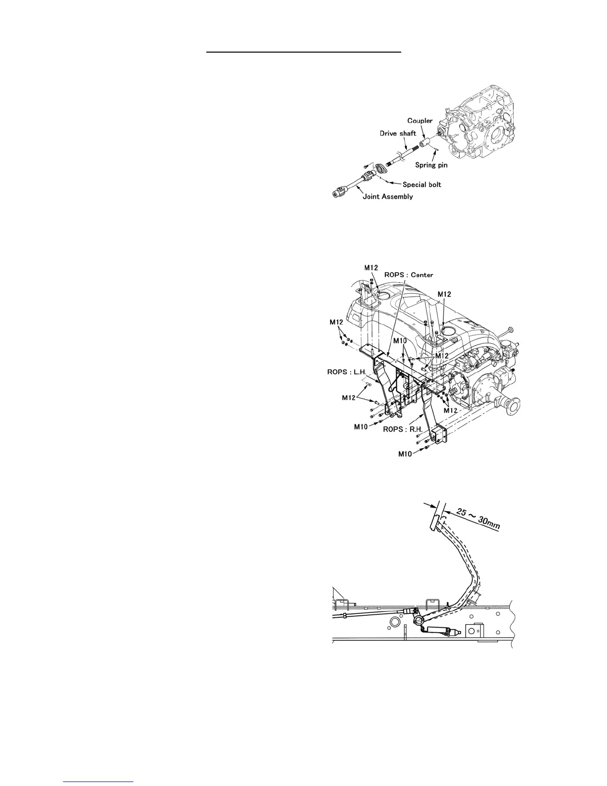 ① Install the ROPS frame (L.H., R.H., Center) onto