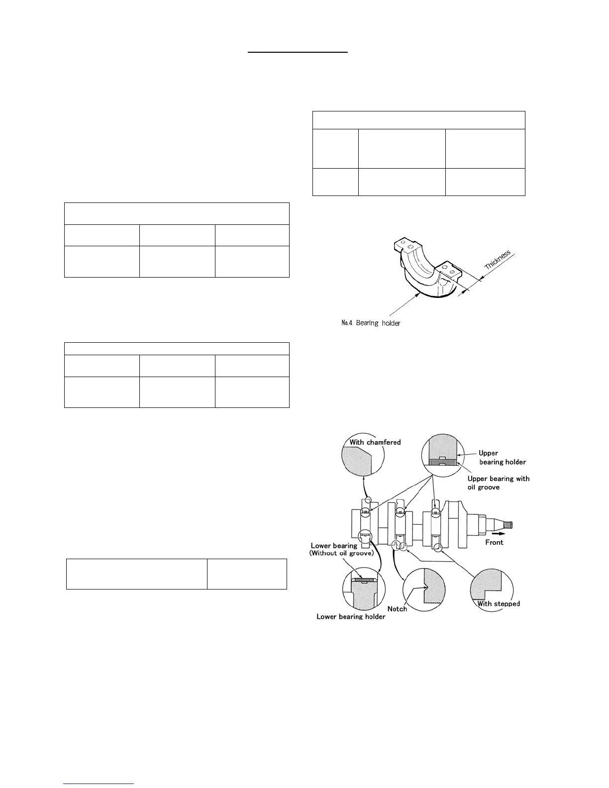 Clearance between crankshaft center journal and metal
