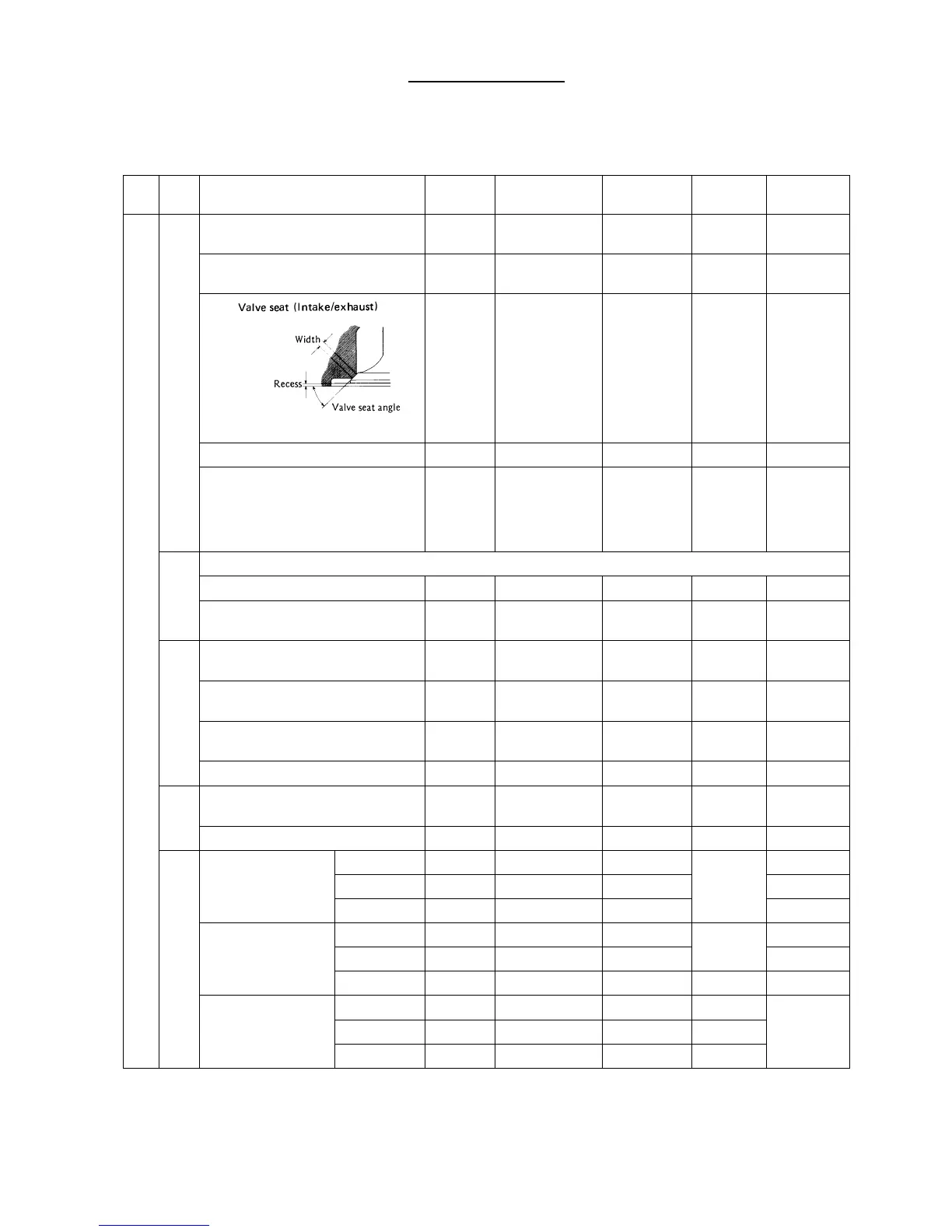 Width of valve seat (intake/exhaust) 1.7 – 2.1 More than 2.5