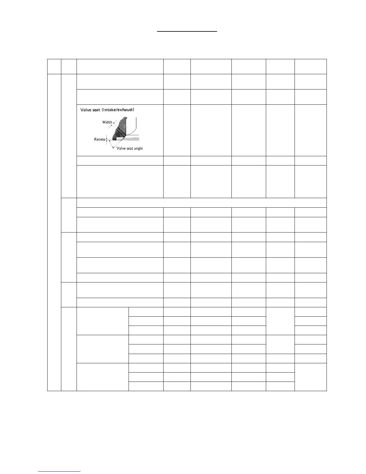 Width of valve seat (intake/exhaust) 1.7 – 2.1 More than 2.5