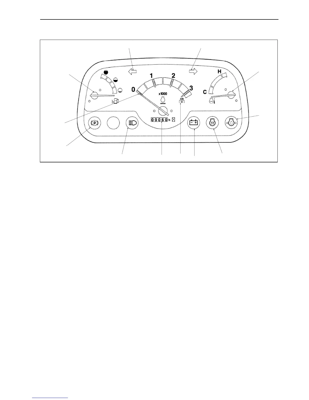 5. Fuel Gauge-Indicates the amount of diesel