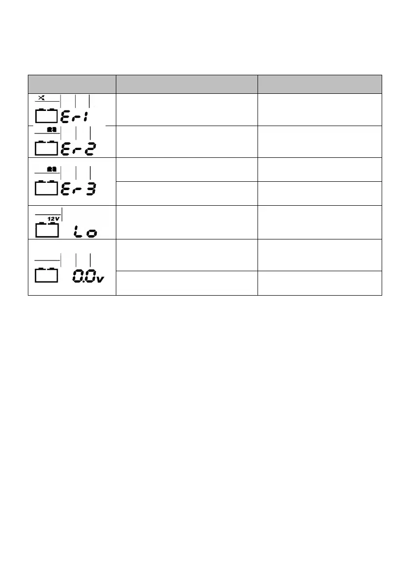 En cas d’anomalie, le chargeur de batterie pourra signaler les indications suivantes: