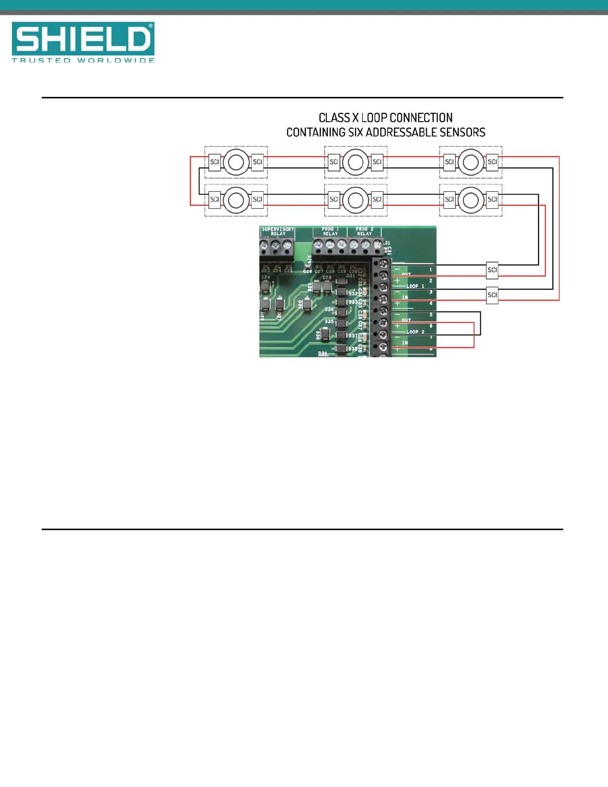 When using Class X wiring, SCI Short Circuit Isolators must be installed before and after each analog