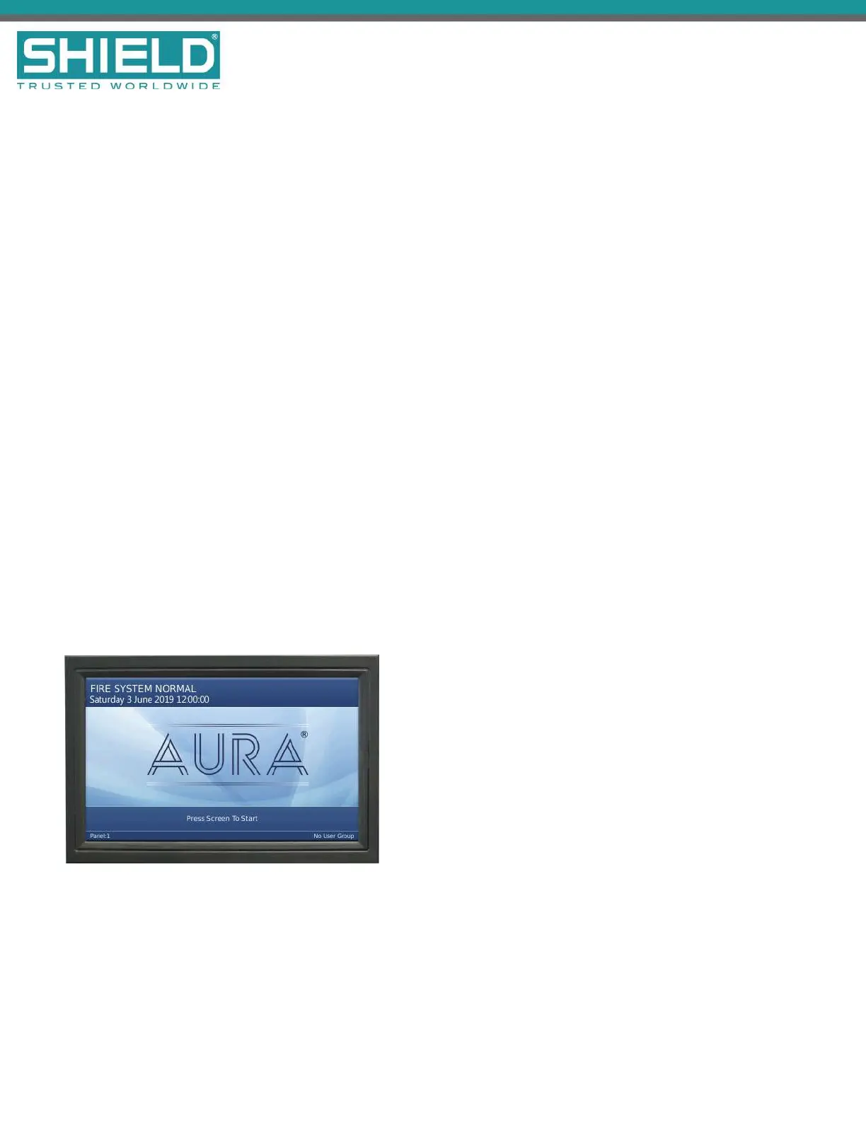 The Fire System Normal screen displays when the Aura Fire Alarm ControlPanel is operating properly and