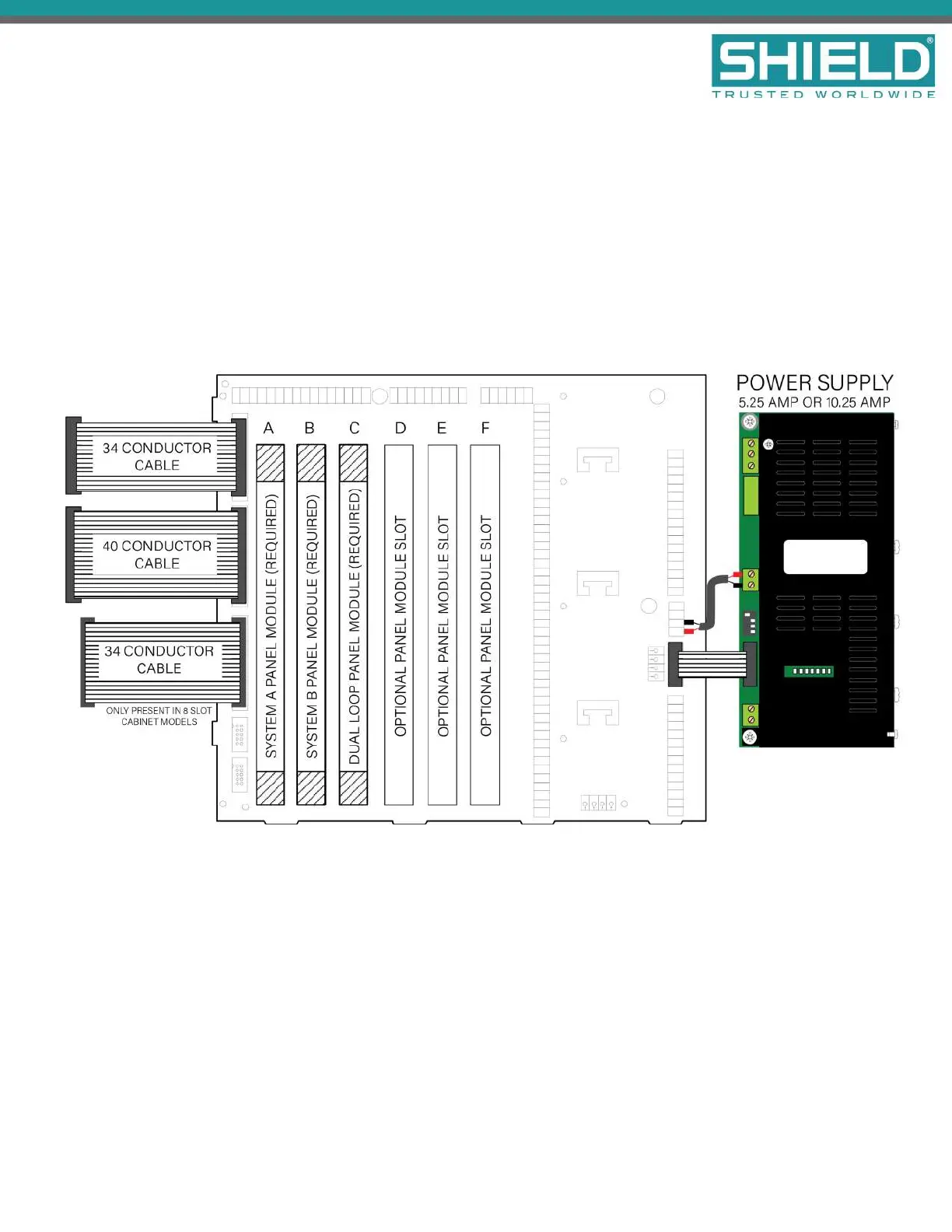 contains System A Panel Module, Slot B contains System B Panel Module, and Slots C, D, E, or F contain a
