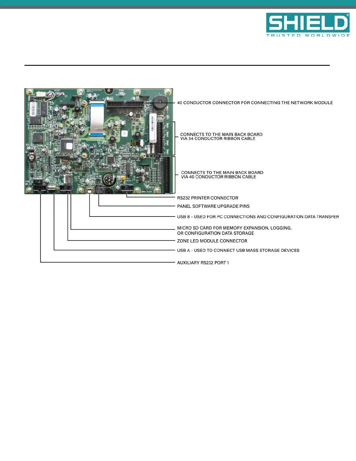 The following figure illustrates connectors and ports of the LCD Main Processor Board: