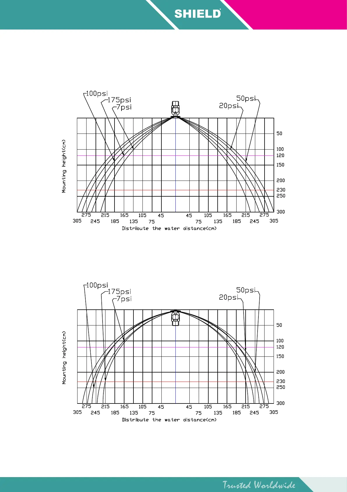 Shield SD1010 - SHIELD Upright, Pendent & Recessed Pendent Sprinkler Distribution Patterns; K5.6 Pendent Sprinkler Trajectory; K5.6 Upright Sprinkler Trajectory
