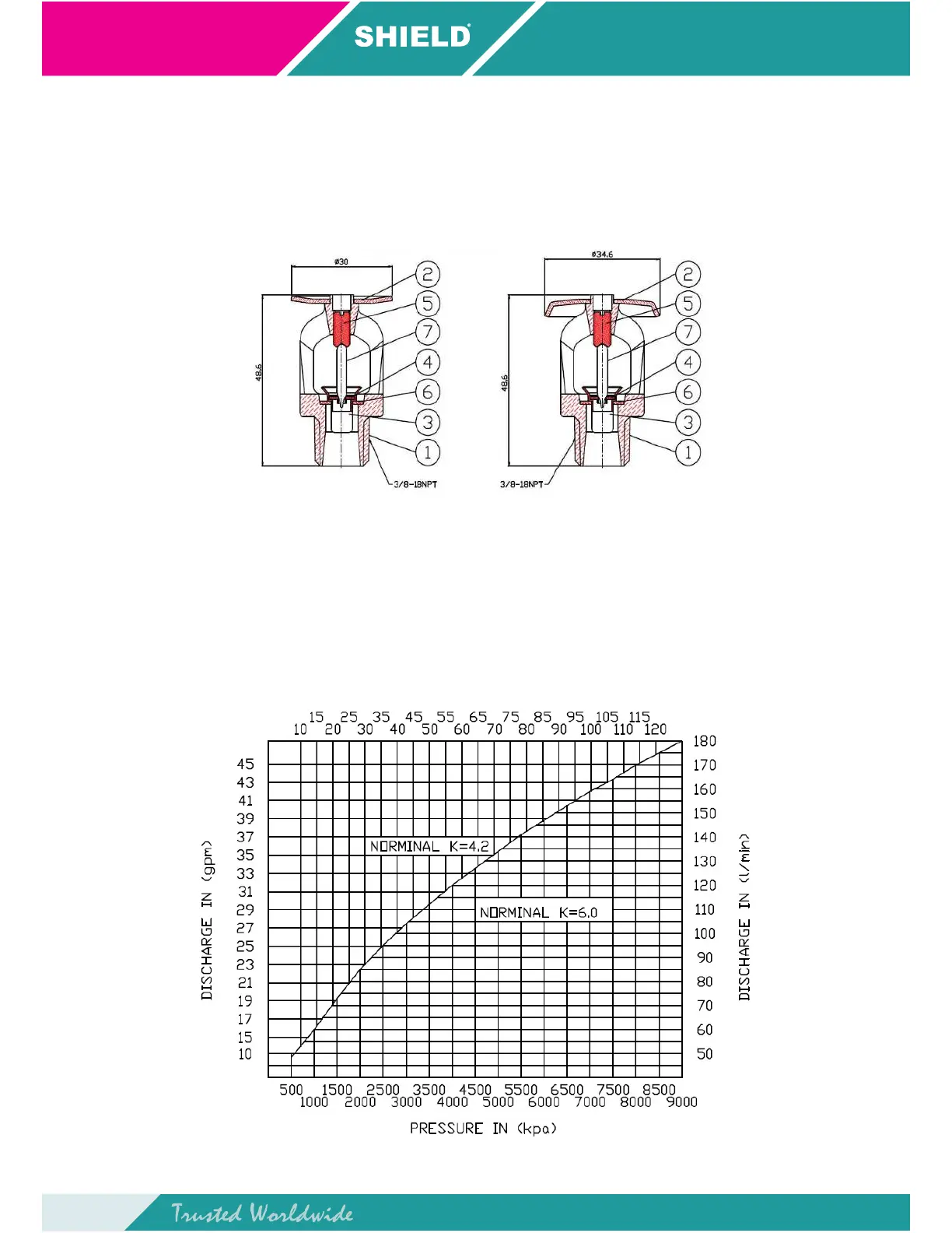 Shield SD1010 - SHIELD Quick Response Sprinkler Data; Part List (SD1020, SD1021); Discharge Curve