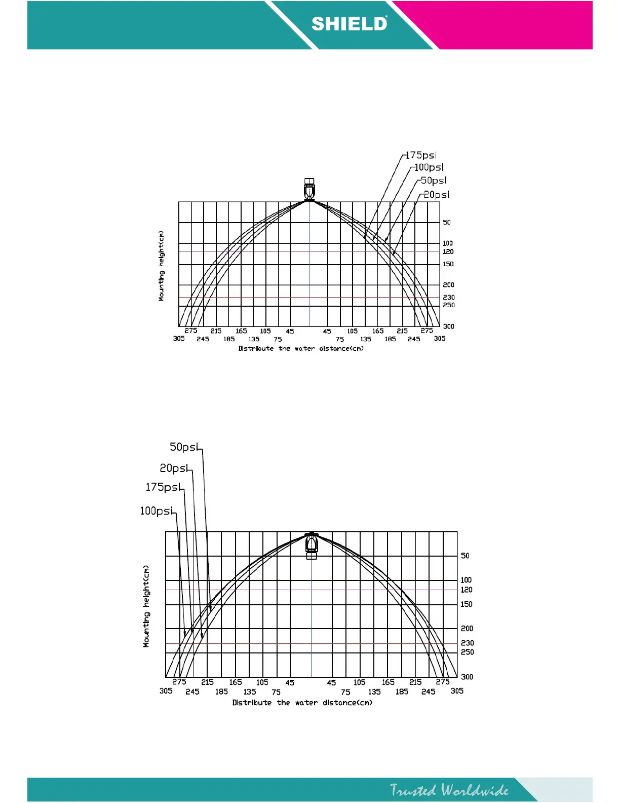 Shield SD1010 - SHIELD Quick Response Sprinkler Distribution Patterns; K4.2 Pendent Sprinkler Trajectory; K4.2 Upright Sprinkler Trajectory