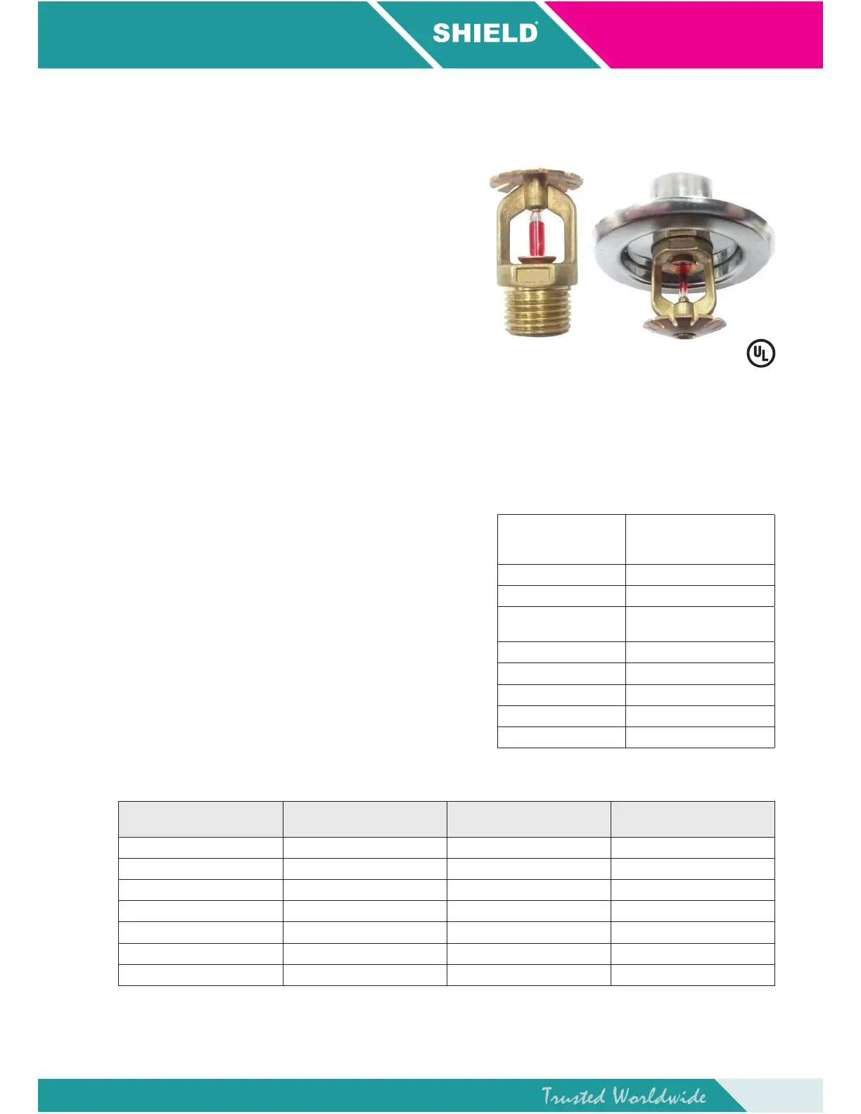 The SHIELD Sprinkler, SD1025, SD1026 (Glass Bulb Type)