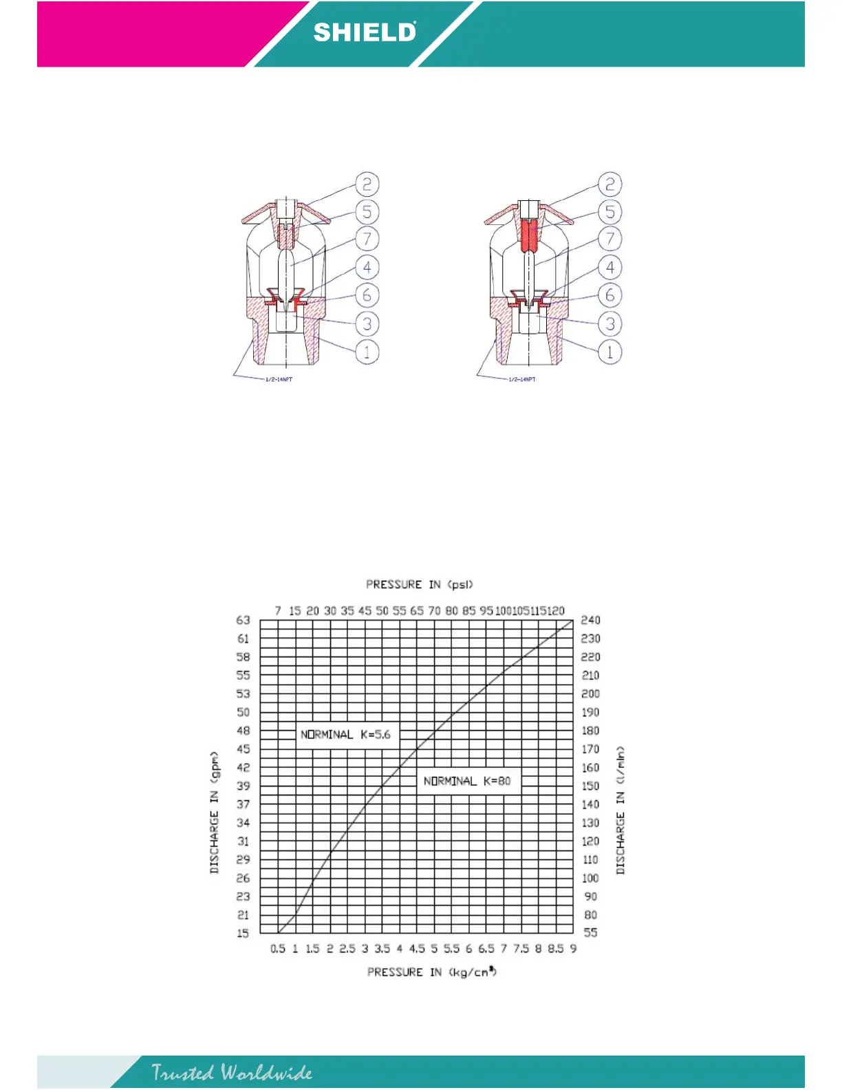 Shield SD1010 - SHIELD Conventional Sprinkler Data; Part List (SD1025, SD1026); Discharge Curve