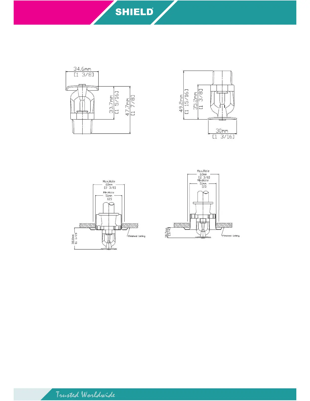Shield SD1010 - SHIELD Upright, Pendent & Recessed Pendent Sprinkler Dimensions; Upright Sprinkler Dimensions; Pendent Sprinkler Dimensions; Recessed Pendent Sprinkler Dimensions