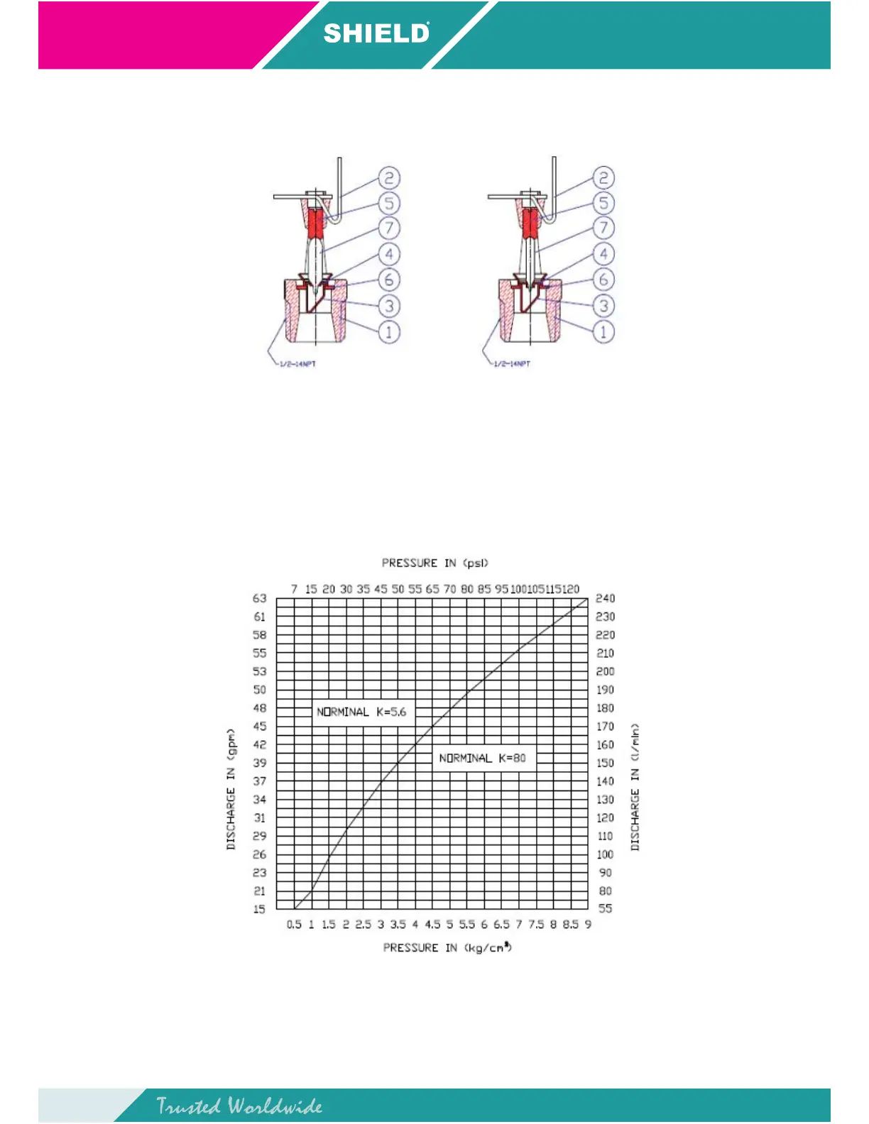 Shield SD1010 - SHIELD Horizontal Sidewall Sprinkler Data; Part List (SD1133, SD1121); Discharge Curve