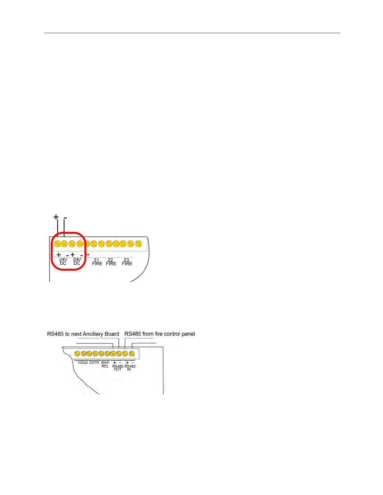 The figure below illustrates two-sets of 24 VDC terminals on the Ancillary Board:
