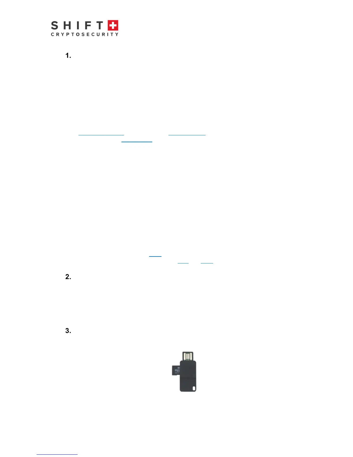 The package delivered to you from Shift Cryptosecurity contains two electronic