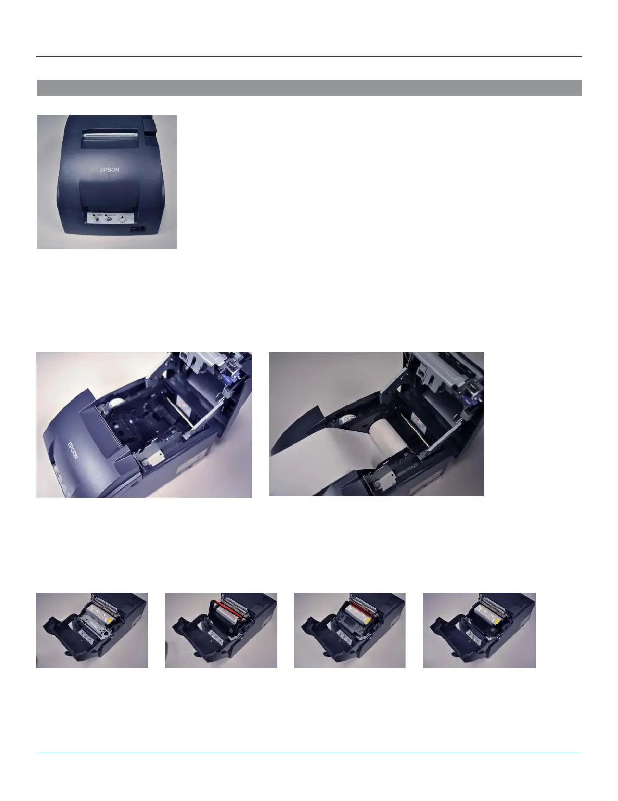 1. Place the thermal paper roll into the top of the receipt printer, feeding from underneath the roll.