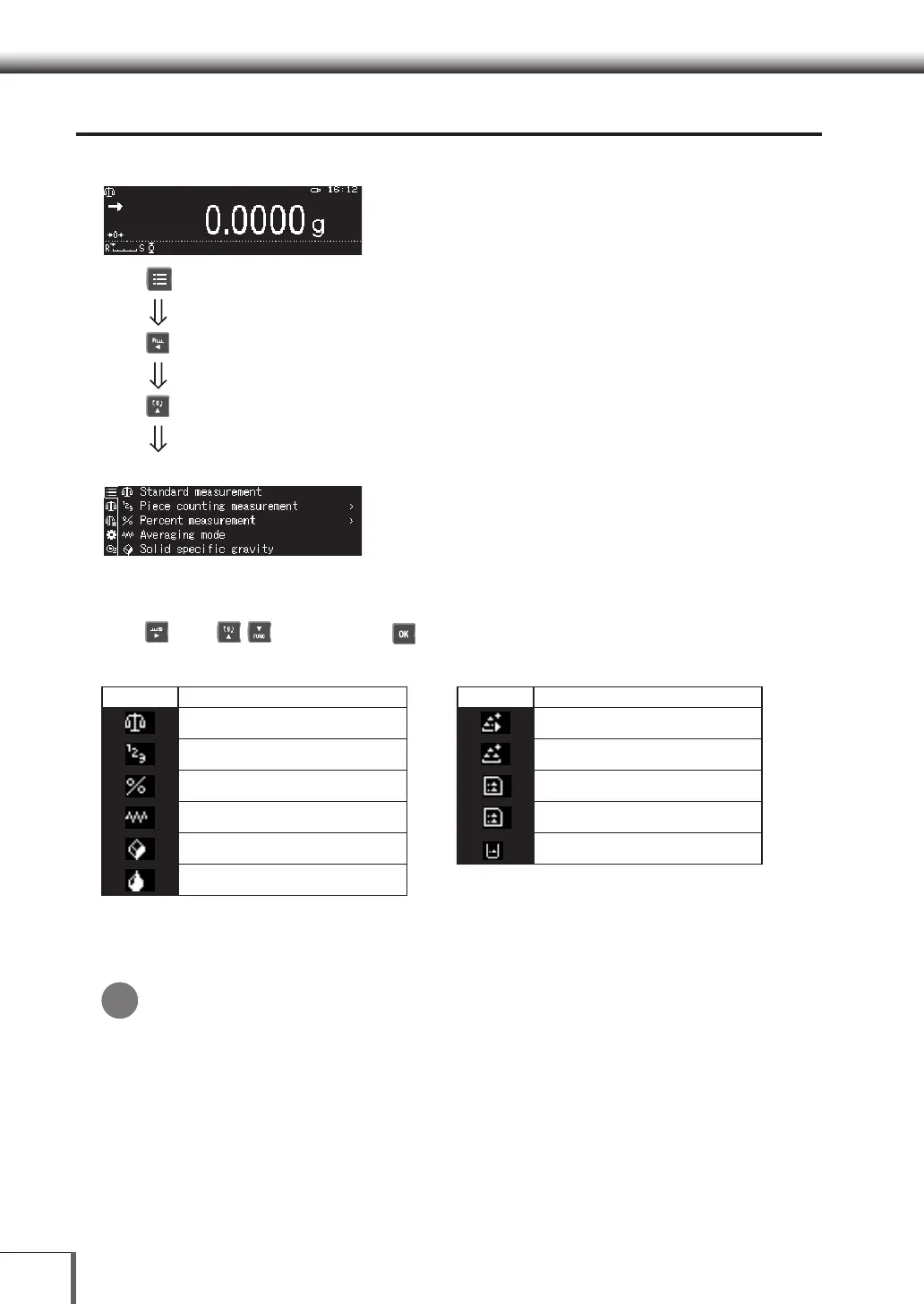 Menu Display (Measurement Selection Mode)