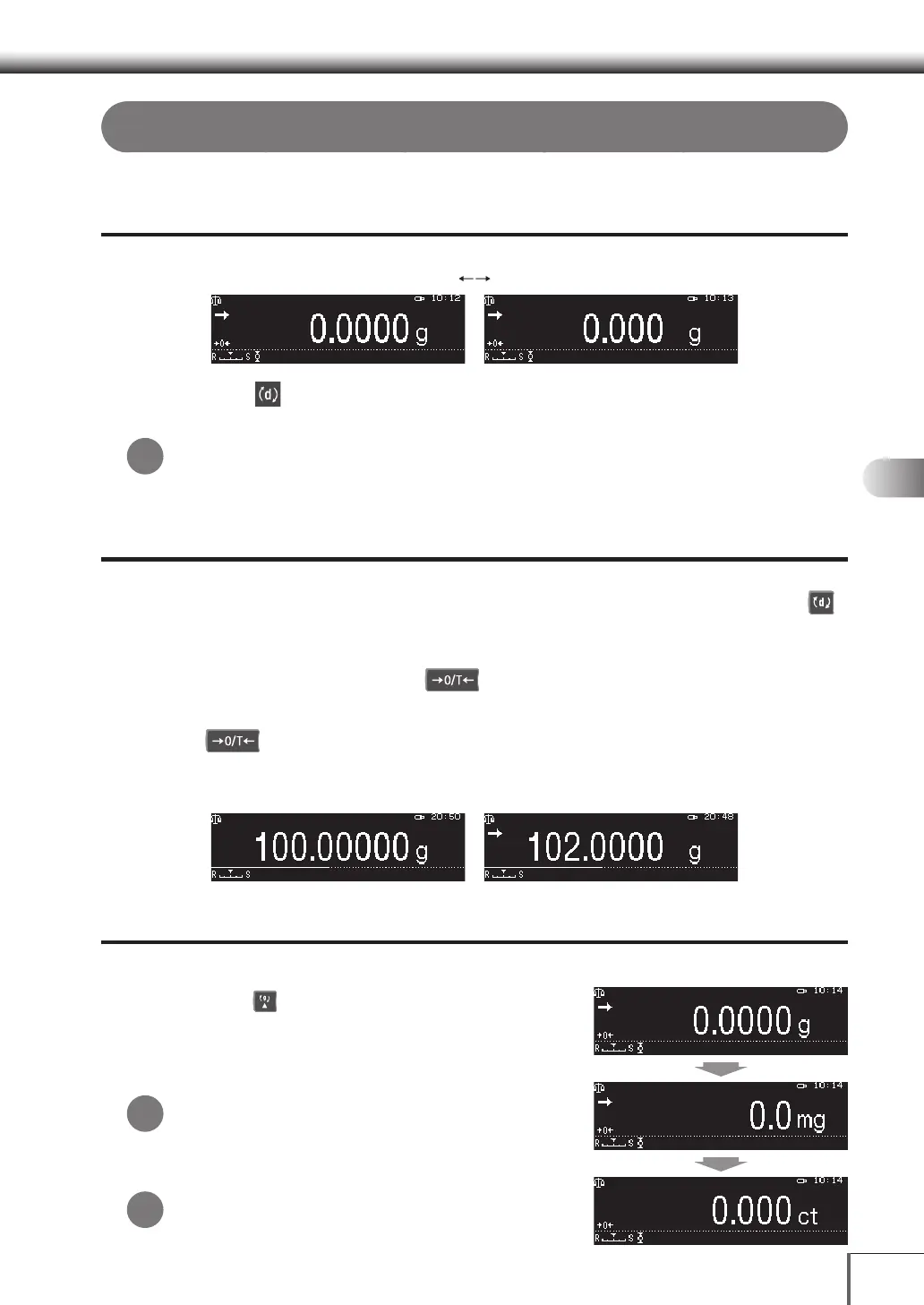 range” at 0.00001 g. To set the minimum display to the “Large weight range” at 0.0001 g, press [